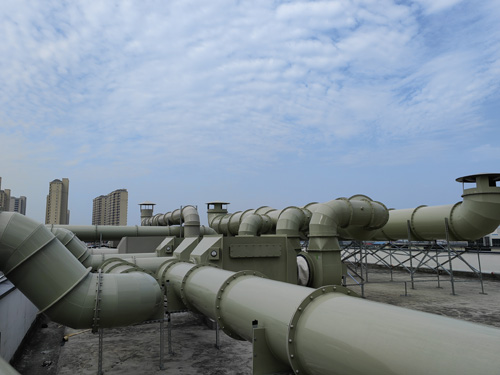 實踐室有機廢氣治理 → 抗逆性炭過濾程序器 → 引羅茨風機 → 擺放